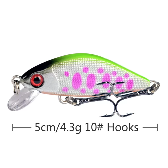 The LureBolt 5cm Mini Crankbait Lures are designed for anglers looking for a compact and highly effective fishing tool. Featuring a lifelike skin and 3D eyes, these lures are crafted to imitate the natural movement of small baitfish, making them irresistible to predatory species.