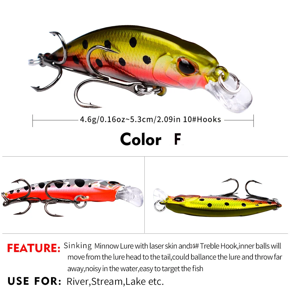 Whether you’re a seasoned angler or just starting out, our Sinking Minnow Lure is designed to give you a powerful edge on any fishing trip. Crafted for versatility and performance, each lure in this set mimics real fish behavior with high-precision design features and eye-catching aesthetics that make it irresistible to predatory fish.